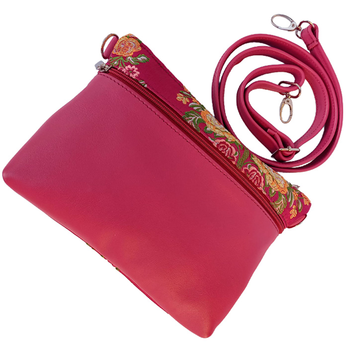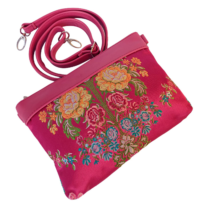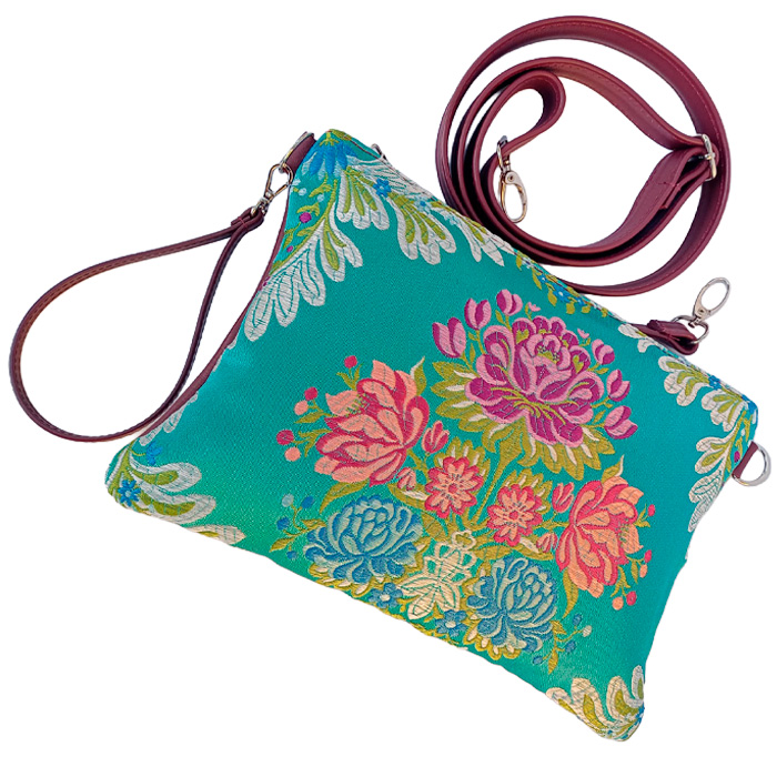Estos complementos combinan la tela de fallera tradicional con piel de alta calidad, dando como resultado piezas únicas que celebran la artesanía valenciana y el espíritu de las Fallas. Su confección cuidadosa mantiene la riqueza del tejido original y aporta un acabado resistente y elegante, ideal para quienes valoran la autenticidad y el diseño con raíces.